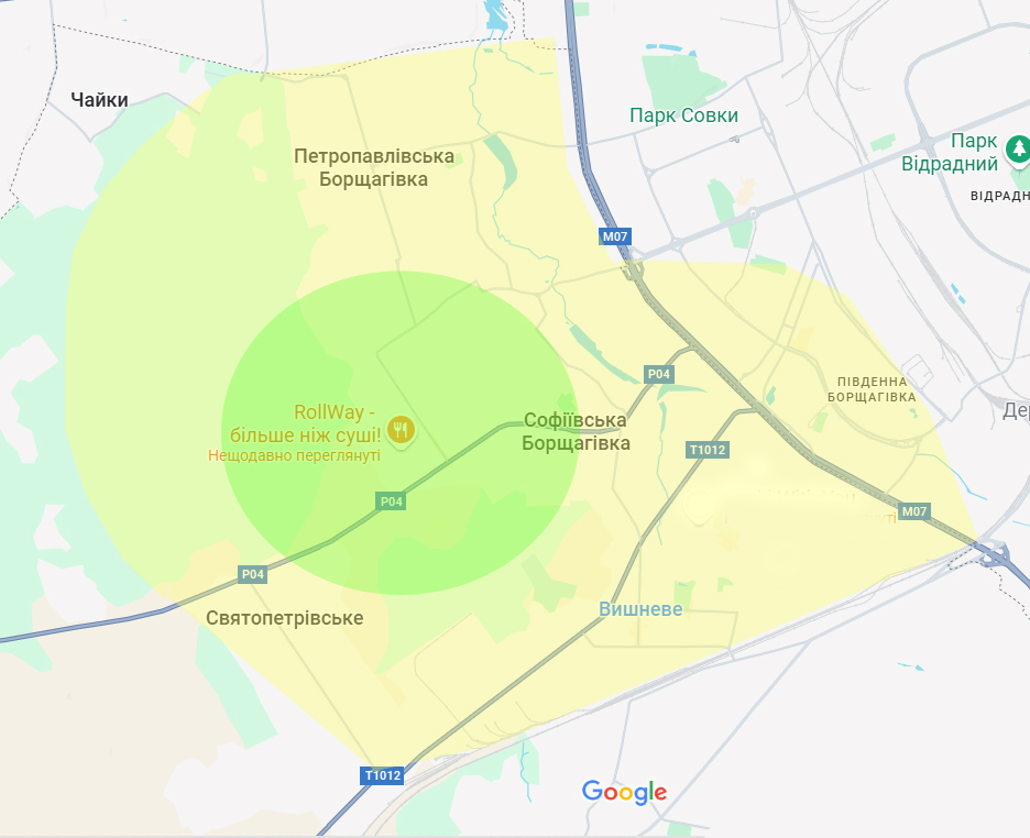 • Доставка у всі відмічені зони коштує 80 грн.
